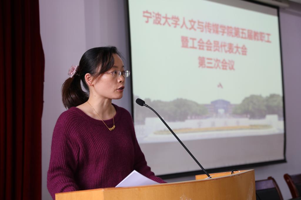 在10#209报告厅召开了第五届教职工暨工会会员代表大会第三次会议。会议由学院党委书记张佩芬主持,39名代表参加。