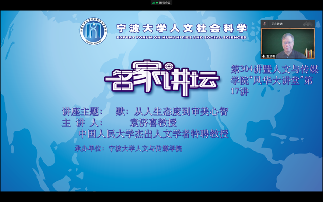 ,为我校师生作了题为“默:从人生态度到审美心智”的线上学术讲座。讲座由我院程景牧博士主持。