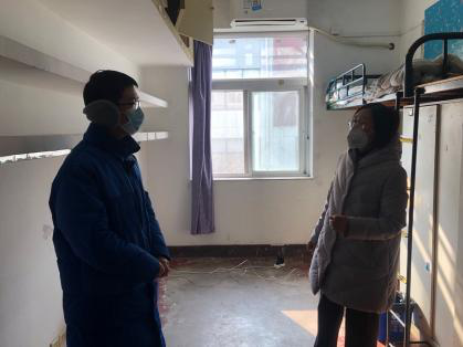 受疫情影响,大部分同学已然有序离校,学院高度重视因个人实际需要在校留宿的同学情况。在寝室走访过程中了解到,留宿的毕业班学生当前面临着就业、考公、考编等重要人生抉择,因疫情影响平添了几分不确定性,过程显得更加坎坷。张书记关心同学的实际需求,为同学们答疑解惑并加油打气。