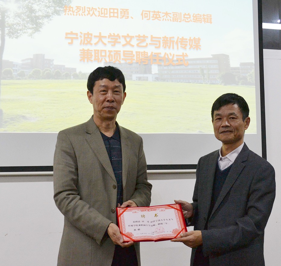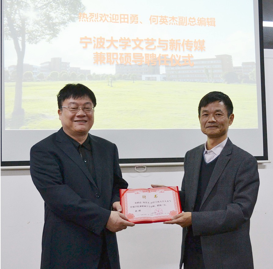 “文艺与新传媒”硕士点分别为宁波日报报业集团的田勇副总编、何英杰副总编和宁波广电集团的徐明明副总裁、毛洲英总监、李飒主播举行了兼职硕士生导师聘任仪式。做爱视频