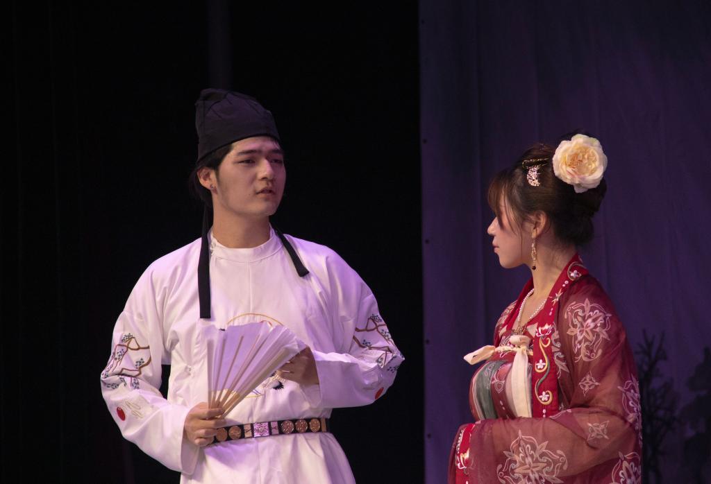 5个社团展示一场精彩的视觉盛宴。首先是传统舞蹈节目《一梦千年》,接着是话剧《风声》、朗诵、历史情景剧等节目,节目非常精彩,现场掌声不断,最后由做爱视频