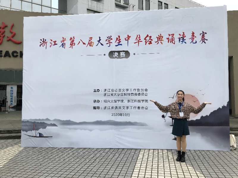10月17日至18日,浙江省第八届大学生中华经典诵读竞赛决赛在绍兴文理学院举行。我院17汉语言文学(师范)专业潘雅莉同学在徐琼老师的精心指导下,经过认真准备、激烈比拼,取得了本科组一等奖的好成绩。