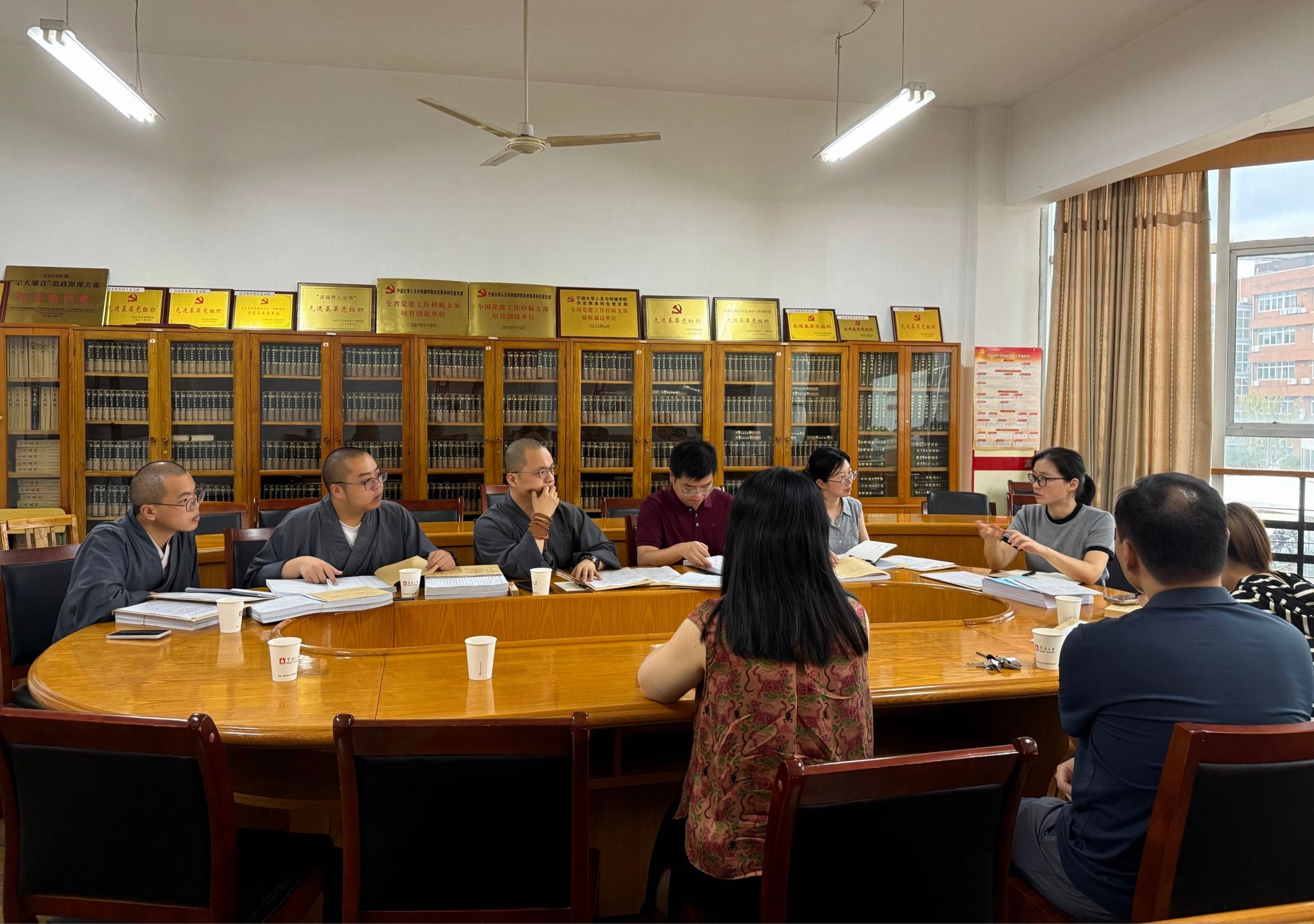 会议结束后,在学院老师的陪同下,浙江佛学院教务长助理一行前往学院档案室进行实地参观,进一步直观了解教学档案的分类存储与规范化管理模式,为本次交流画上圆满句号。