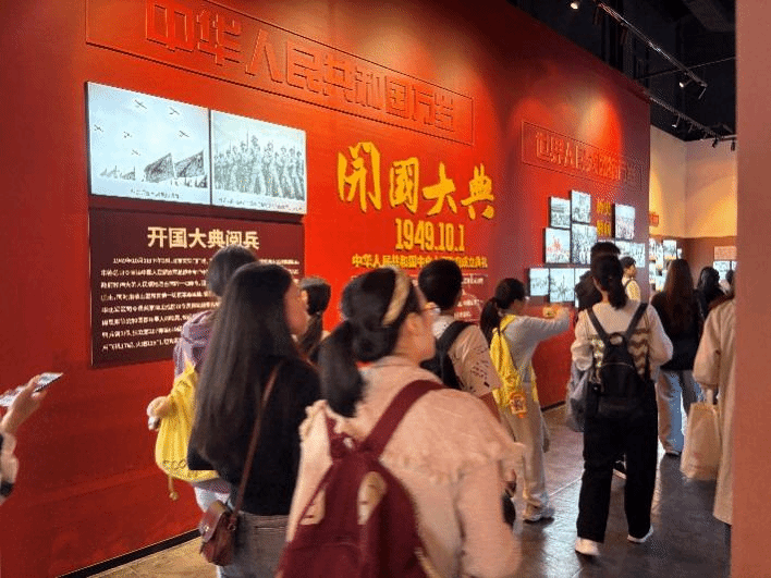 上午,师生首先走进“光影鎏痕”展览馆与党史馆。馆内珍贵的史料图片、生动的实物陈列、沉浸式的场景还原,系统展现了党的奋斗历程与红色文化的发展脉络。同学们驻足凝视、认真聆听,时而交流感悟,时而记录要点,在一幅幅历史画面中重温峥嵘岁月,在一段段奋斗故事中感悟初心使命。