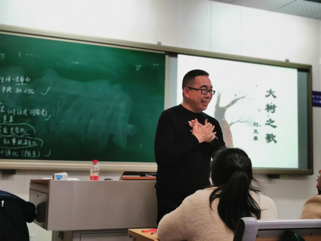 此外,刘飞耀老师还补充了在解读文本时要切忌非文本解读、浅阅读、泛概念化解读、泛政治化解读、时尚化解读和功利化解读。“通过这堂课,我才知道原来散文教学还可以这样教,而且文本和言语的重要性也给我留下了深刻的印象。”听课的学生称。