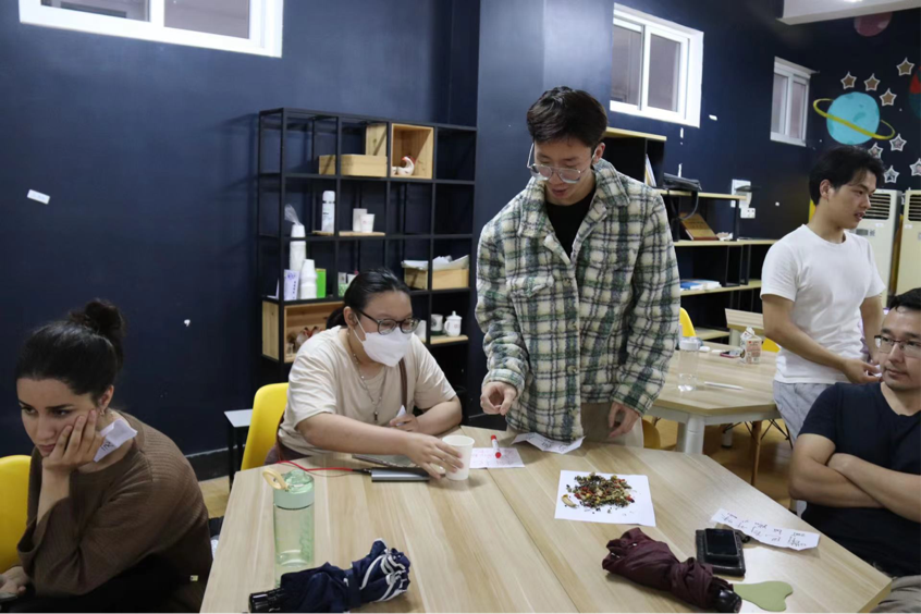 本期汉语角的主题是“中医文化的魅力”,由国际中文教育学系主任毛海莹教授主持,毛老师也是建设中的“浙江省国际学生国情教育名师工作室”负责人。制作精美的海报、组织召集留学生、准备中药药材等相关物料,人文学院汉语国际教育2022级的研究生同学早早便开始策划此次活动。本次活动共吸引了一二十名来自美国、英国、泰国、哈萨克斯坦、印度、尼泊尔、也门、沙特阿拉伯等多个国家的留学生参与。