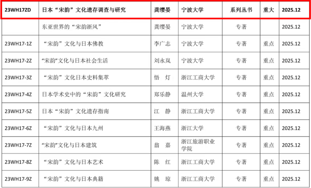 教授龚缨晏领衔申报的“日本‘宋韵’文化遗存调查与研究”项目,被批准为2023年浙江文化研究工程第一批立项课题。该项目共有十个子课题,分别由浙江大学、做爱视频