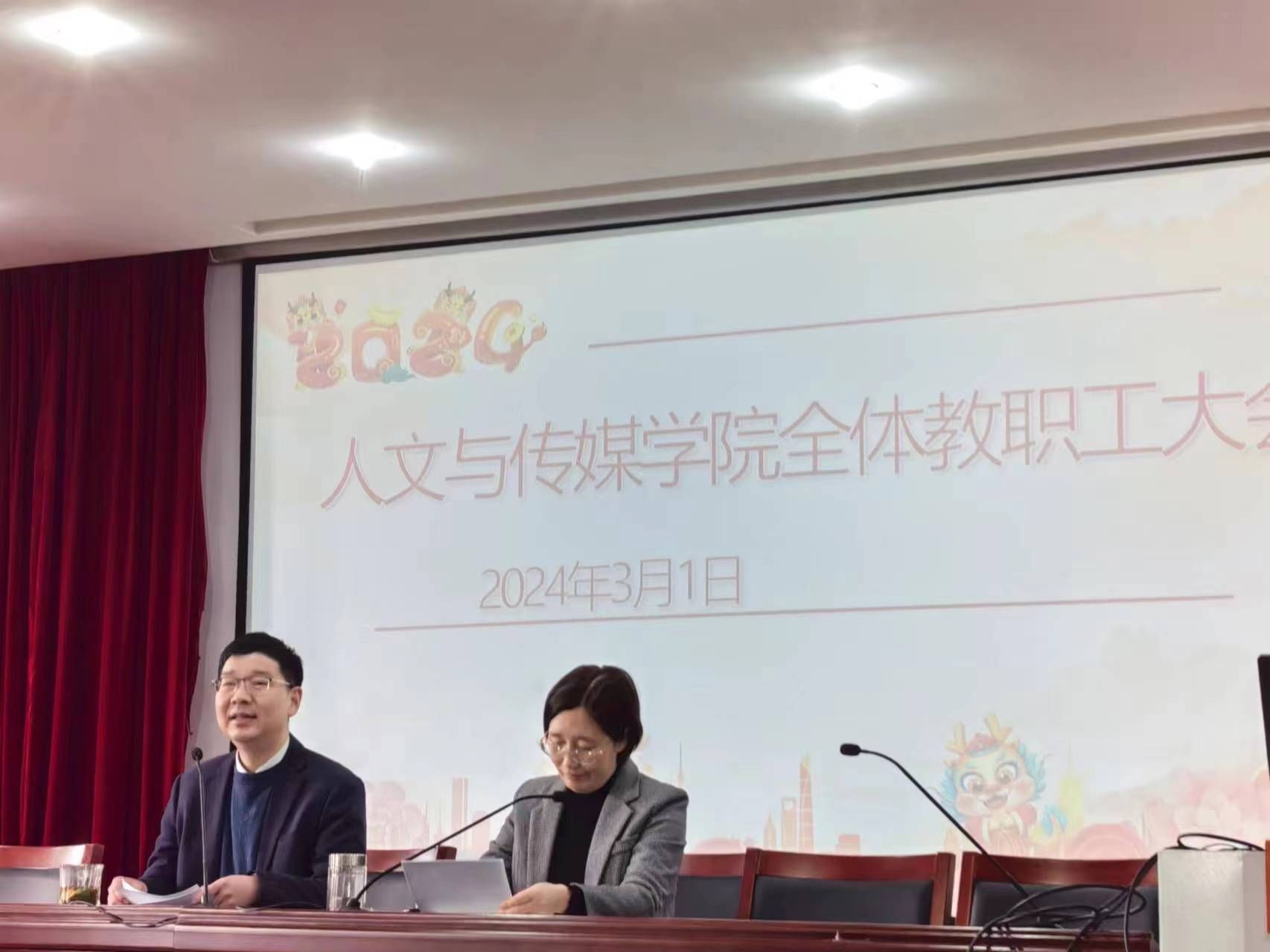 在包玉书科学楼10号楼209报告厅召开全体教职工大会,传达学习学校2024年寒假中层领导干部扩大学习会、学科建设工作会议等学校会议精神。