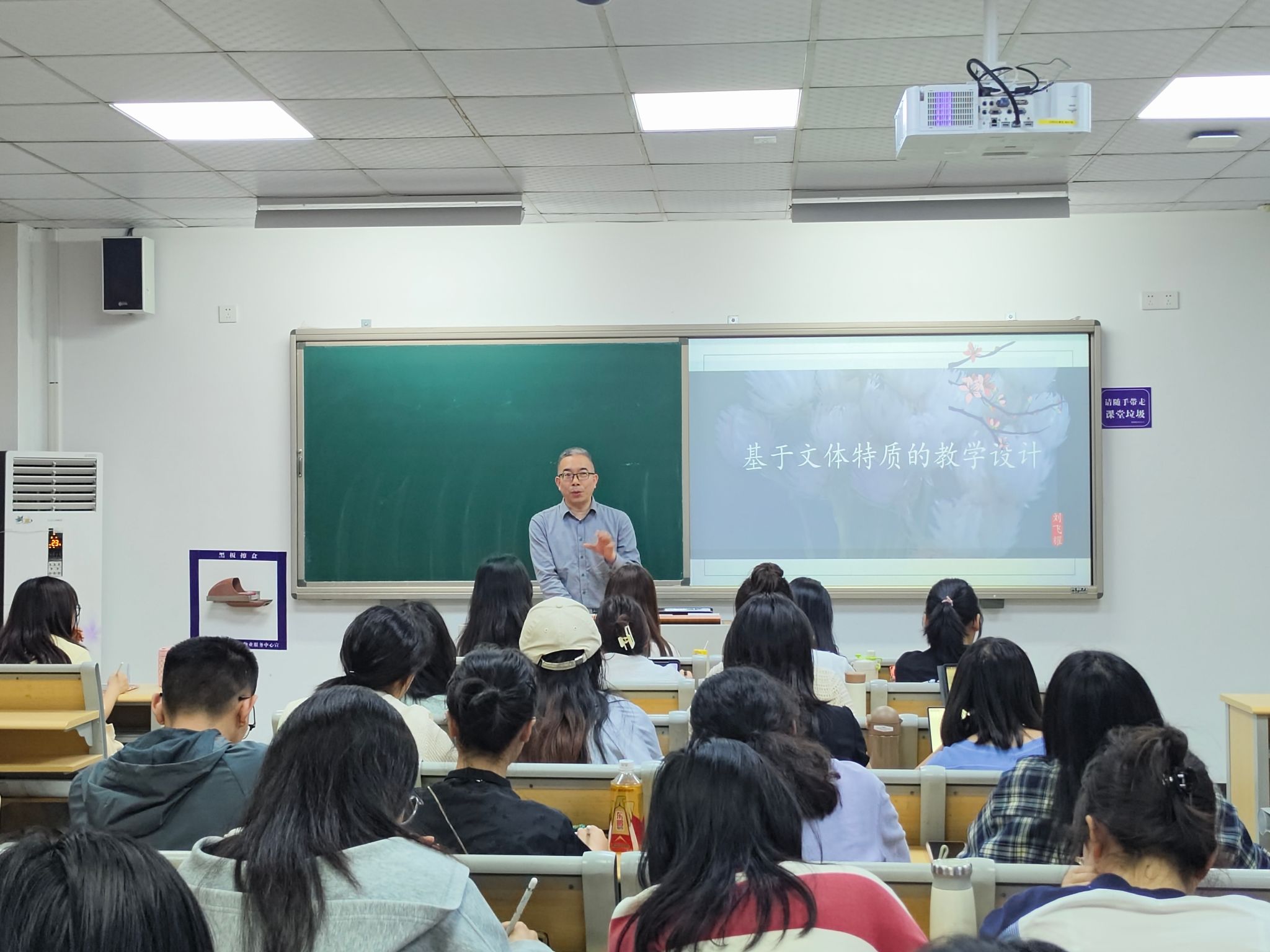 5月7日下午,宁波滨海教育集团总校长、特级教师刘飞耀,受邀为2021级汉语言文学(师范)班全体同学开展讲座。