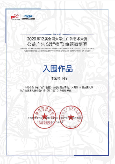 2020大广赛(全国微博赛入围作品)(视频类)《破“疫”前行》18广告李紫琦